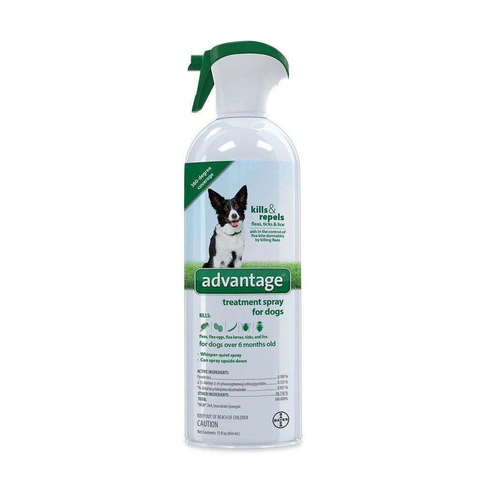 Advantage® Treatment Spray for Dogs kills and repels fleas, ticks and lice. The active ingredients inhibit development of immature flea stages (preadult fleas and flea eggs) as well, which prevents them from growing into adult fleas that are capable of biting.