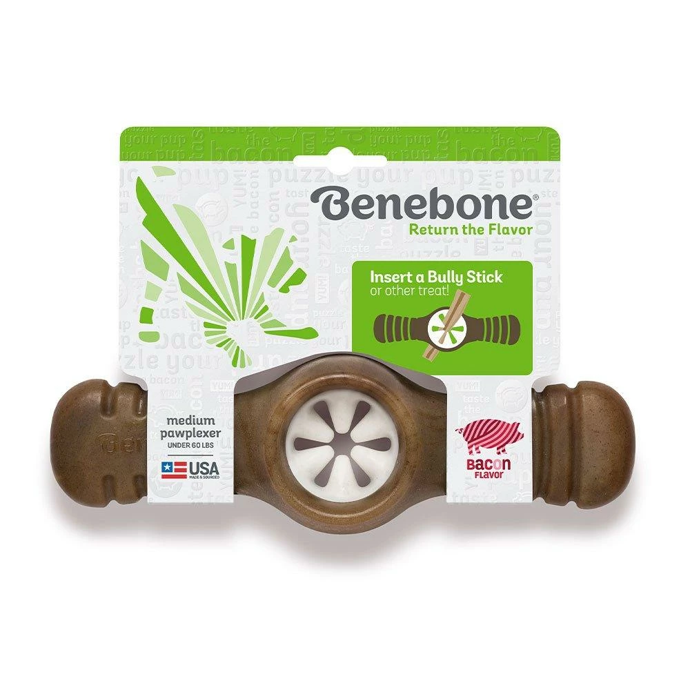 Pawplexers were thoughtfully designed to provide even more interactive fun for your dog. Ever wished you could make those expensive treats last longer• Prefer not to have bully stick stink rubbed all over your carpet• Us too. What makes the Pawplexer unique is the rubberized center portion that is perfect for holding a bully stick, jerky, or your dog’s favorite treat. Made in the USA using the same high quality ingredients as the rest of the Benebone family, the Pawplexer can hold its own as a chew toy but doubles as a way to challenge the noggins’ of the craftier dogs out there. Check out our blog to learn more.