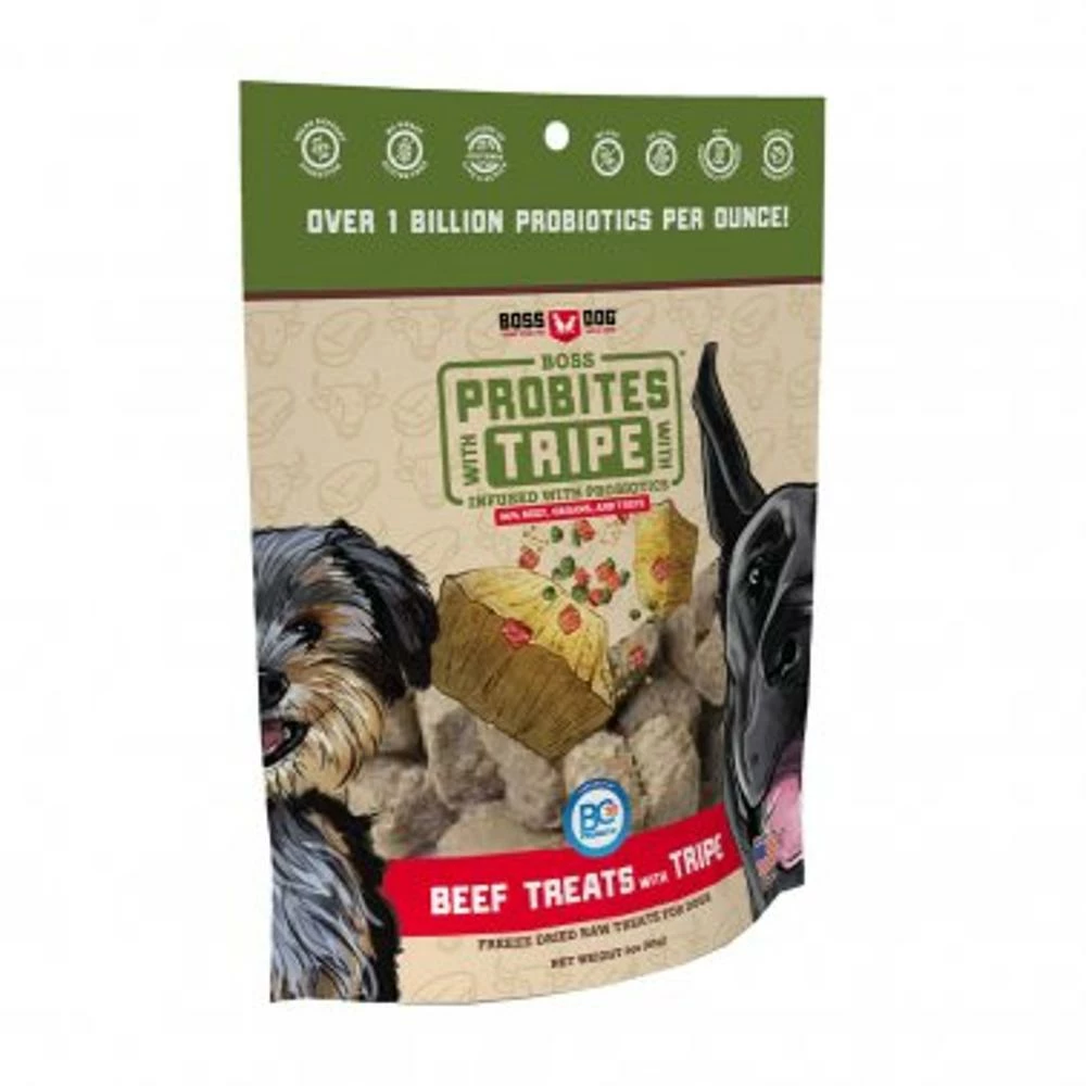 PROBITES&trade are a never before seen probiotic infused treats with TRIPE. These treats with over 1 billion probiotics per ounce are a great training tool with limited ingredients. Available in both Pork and Beef your boss dog is sure to love both of these protein offerings!