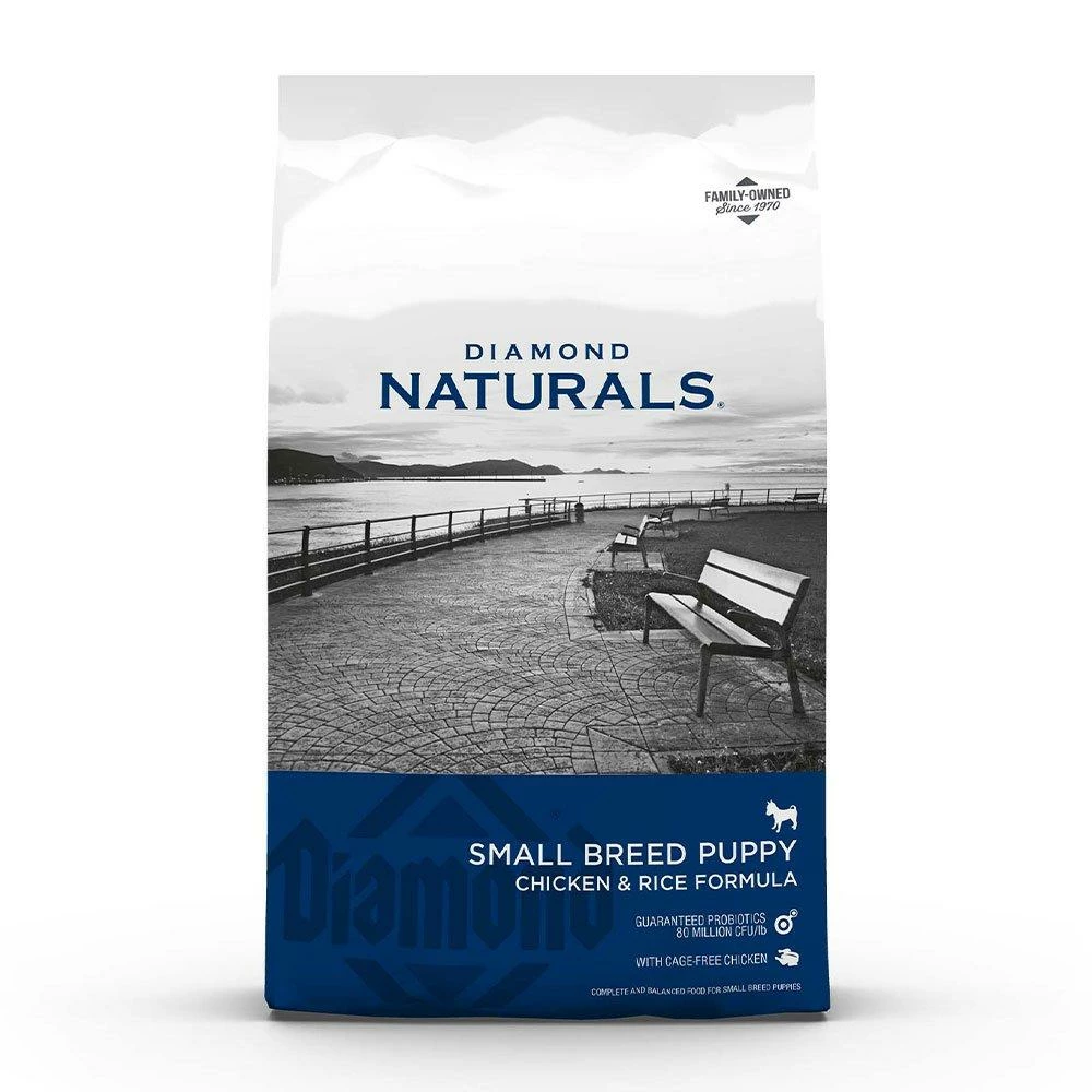 Diamond Naturals Small Breed Puppy Chicken & Rice Formula is formulated to meet the nutritional levels established by the AAFCO Dog Food Nutrient Profiles for puppies. Tiny bites made for tiny teeth deliver the complete nutrition your small breed puppy needs to grow up strong and healthy. Added DHA promotes proper brain and vision development, while omega-6 and omega-3 fatty acids help keep the skin healthy and coat shiny from the start.