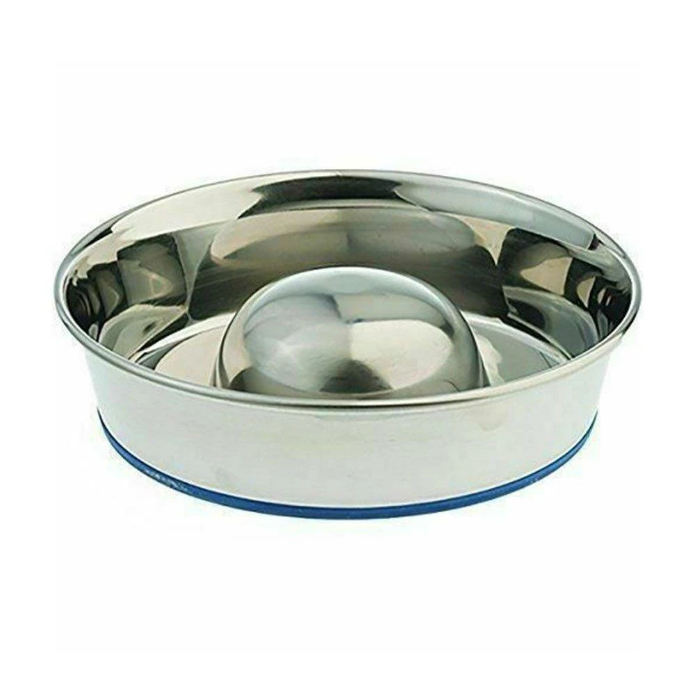 - THE BENEFITS OF SLOW FEED: A slow feed dish can reduce bloating, choking and gastrointestinal discomfort. When dogs eat from the OurPets Durapet Slow Feed Bowl, the solid centerpiece causes them to eat along the edges with more mental attention, resulting in a slower feeding routine. This can promote long-terms health benefits for your dog