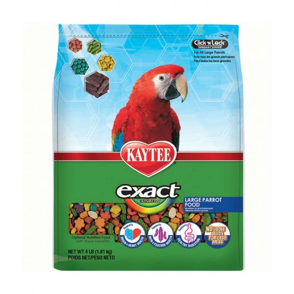 Kaytee exact Rainbow Large Parrot food is a premium extruded food and has been the recognized nutritional leader by avian nutritionists, veterinarians and breeders since its introduction over 25 years ago. Each nugget contains “exact nutrition” ensuring your bird gets exactly the right nutrition to produce better feathering, brighter colors and maintain excellent health. exact Rainbow is 100% consumable with no seed hulls or shells for less mess. Kaytee understands that sharing your life with a pet bird is not only enjoyable but very enriching. Kaytee shows our love by ensuring we provide your pet bird with the best nutrition for a long and healthy life. With over 150 years of avian nutritional experience, it’s no wonder why Kaytee is at the heart of every healthy feeding routine. A naturally preserved product needs special attention to maintain maximum freshness. After opening bag, remove air from package and reseal tightly. Use food within 30 – 45 days. Store in a cool, dry location. Refrigerate or freeze for extended storage.