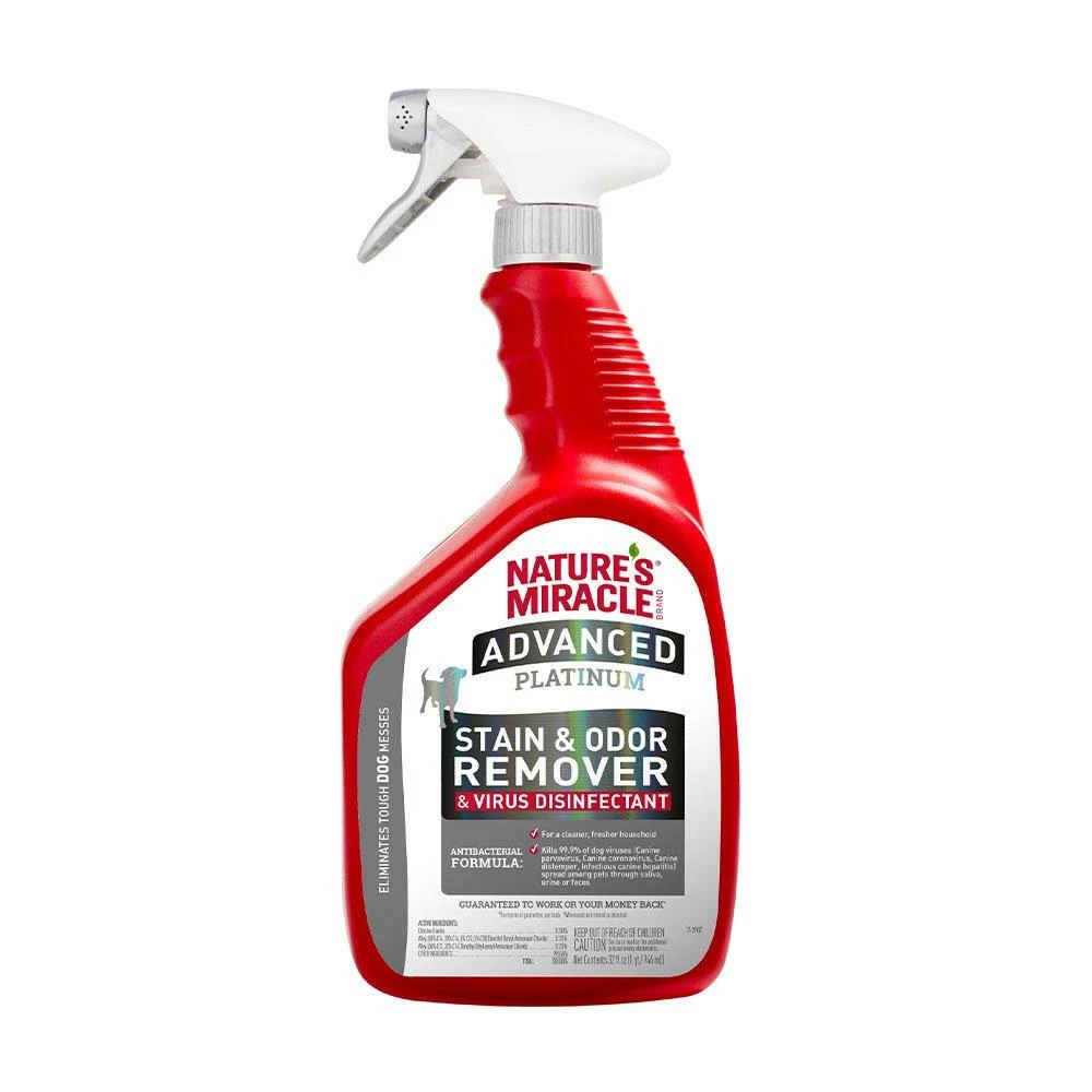 Nature’s Miracle® pet stain and odor removers have been a trusted brand for pet mess cleanup for more than 35 years. Nature’s Miracle stain and odor removers, virus disinfectants, training aids, litter and waste management and grooming products offer solutions for life with pets, from everyday messes to the toughest cleanup jobs. Whatever pets do, you can trust Nature’s Miracle products to undo. Accidents happen, as every dog owner knows. Nature’s Miracle® Brand Advanced Platinum Stain & Odor Remover & Virus Disinfectant for dogs disinfects as it cleans for a cleaner, fresher household. The antibacterial formula kills 99.9 percent of dog viruses, including Canine parvovirus, Canine coronavirus, Canine distemper and Infectious canine hepatitis, spread among pets through saliva, urine or feces. It eliminates tough dog messes.