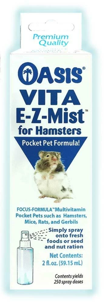 Hamster & Pocket Pet Vita E-Z-Mist 2 Oz Is The Same Great Quality Product You Have Come To Trust In Oasis Vita Drops, Now As A Handy 2 Oz Spray On. Great For Use On Fresh Foods, Seeds, Pellets Or Hay.
